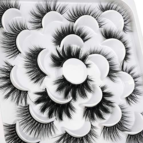 10 Pairs 6D Mink Eyelashes 5 Kinds Lashes Pure Look Wispy Fluffy False Eyelashes Crossed Dramatic Faux Lashes Comfortable Handmade Reusable Lashes Pack