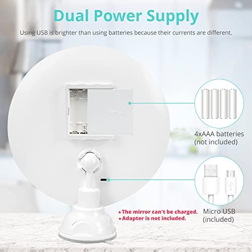 DUAL POWER SUPPLY – Our lighted magnifying mirror is a up to date model, twin energy provide design, handy to make use of at residence with USB cable and compact for journey with 4*AAA batteries(NOt Included). This magnified mirror is not rechargeable