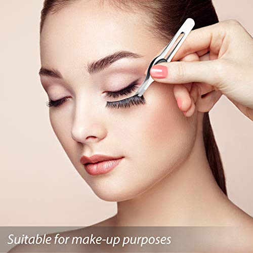 2 Items Extensive Non-Slip Grip Slant Tip Tweezers Stainless Metal Slant Tweezer Precision Tip Hair Clip Tweezer for Ingrown Hair (Silver, Black)