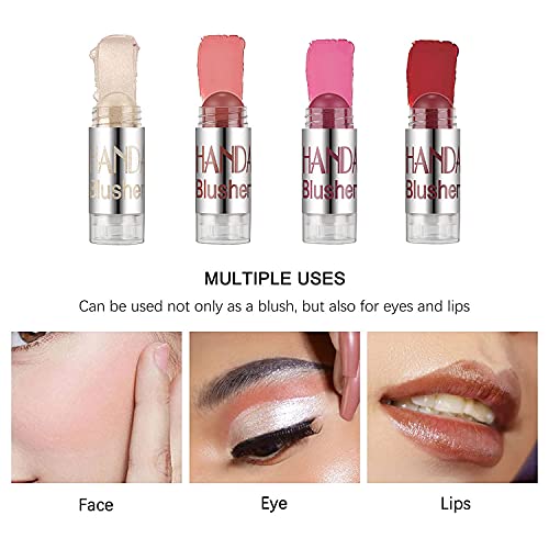 4 Colours Blush Sticks for Cheeks and Lips, Chubby Cream Blush Sticks, Highlighter Trimming Rouge Pen, Light-weight Lengthy Lasting Straightforward Apply Cream Blush, Accommodates 1 Spotlight and three Matte (A)
