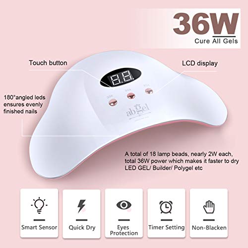 ❤ 36W LED UV Nail Lamp: Abgel One-Step Gel Nail Polish Starter Equipment With UV Nail Lamp-Revolutionary Form with 36W Excessive Energy can effectively treatment every kind of gel nail polish.Nail dryer lamp can be light-weight, small, transportable for carry.You’ll be able to change your nail colour at any time in response to your temper or event.