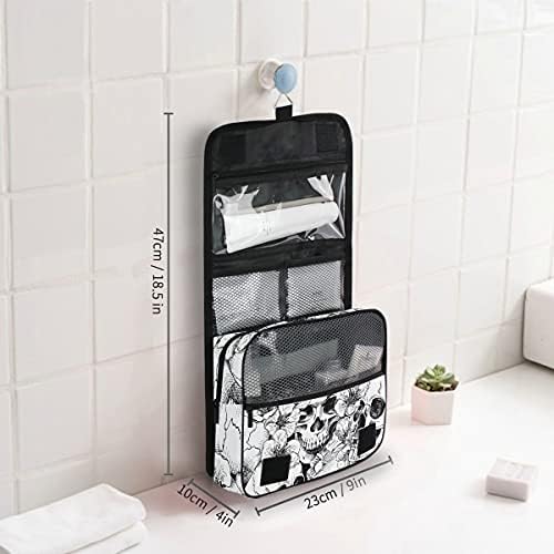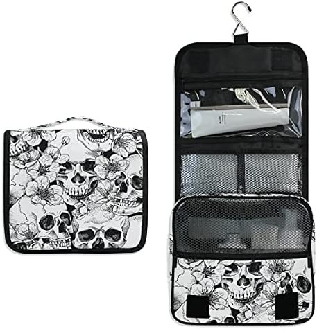 ADAKing Hanging Toiletry Bag Sugar Cranium Flowers Print Journey Bag with Hanging Hook Giant Capability Transportable Beauty Bag Journey Organizer Toiletry Equipment for Girl Man
