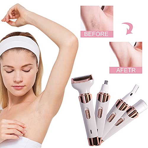 AHUADA Rechargeable Eyebrow Trimmer and Facial Hair Elimination for Girls, 4 in 1 Eyebrow Razor and Face Hair Remover Painless Eyebrow Lips Physique Face Razors for Girls