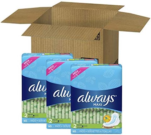 4 reviews for All the time Maxi Female Pads with Wings for Girls, Measurement 2, Lengthy Tremendous Absorbency, 180 Rely, FSA HSA Eligible, Unscented, 60 Rely – Pack of three (180 Rely Whole)