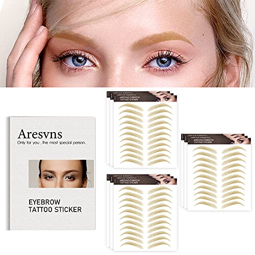 Aresvns Blonde Eyebrow Tattoo Stickers 9 Sheets Lifelike Eyebrow Transfers Sticker for Make-up, Hair-Like Pure Tattoo Eyebrow Stickers, Ecological Waterproof Eyebrows Make-up for Blonde Ladies Women