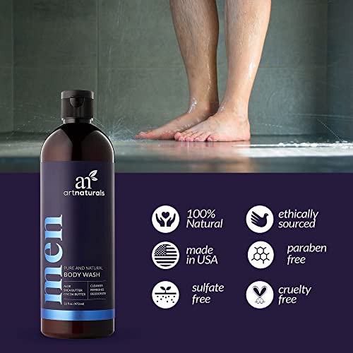 artnaturals Males’s Contemporary Physique Wash – 16 Oz Pure Bathe Gel that Cleanses, Refreshes, Deodorizes & Moisturizing – Males’s Liquid Cleaning soap w/ Aloe Vera, Shea Butter, Important Oils & Cocoa Butter