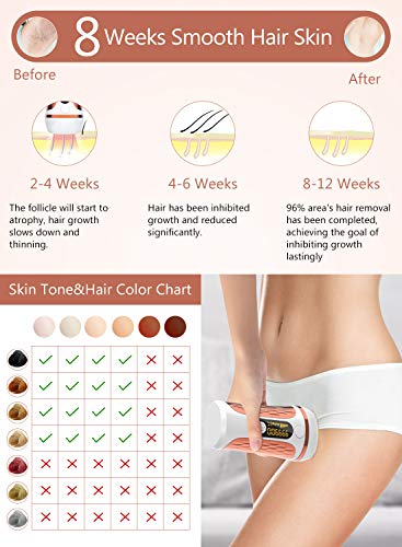 Environment friendly & Skilled – Two flash modes, guide mode is principally used for small space hair removing, akin to bikini line, underarm, and many others. Auto mode is principally used for giant space hair removing, akin to arm, leg, again, and many others.It solely takes 8 weeks to realize clean and hairless pores and skin,if you’re searching for a protected hair removing machine that can be utilized at dwelling, it’s a sensible choice for you.
