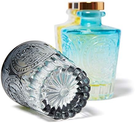🌹 ELEGANT DECORATION – Our oil diffuser bottle set is available in comfortable blue, yellow, charcoal gray, and white. These bottles have an embossed medallion design throughout, excellent for any inside.