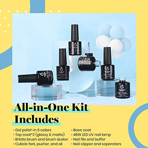 What You Get: Full measurement of 6 colours unicorn assortment beetles gel nail polish set gel nail package with nail lamp, sturdy 48W LED nail lamp dryer, 9 items of nail artwork designs manicure instruments and three bottles of base gel shine matte high coat which is top of the range gel nail package for an economical worth, assured!