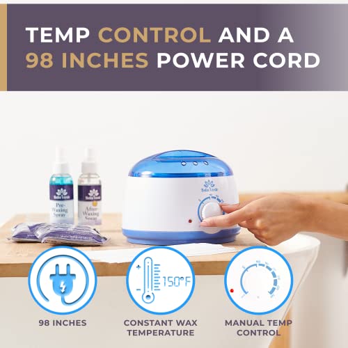 Bella Verde Waxing Equipment – House Wax Equipment for Girls and Males – Wax Hotter – 5 Packs of Wax Beads – Wax Pot – Pre & Put up Wax Spray 20 Wooden Sticks – Arduous Wax Beans for Brazilian Physique Legs Eyebrows Face Lips Armpits