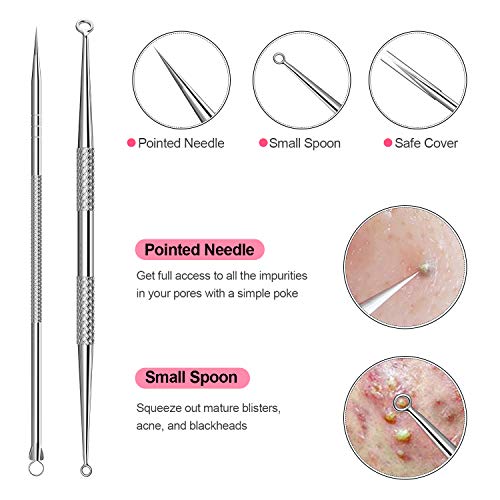 [Anti-allergic Design]: The blackhead elimination device designed with electroplated needle and stainless-steel coating,It will not trigger sensitivity points, our pimple extractor package can work on all forms of pores and skin.