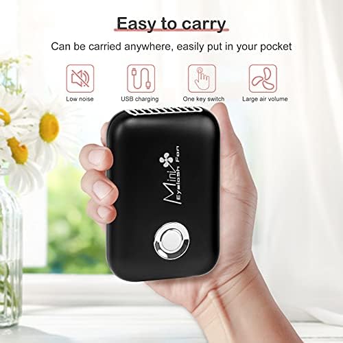 Buqikma Eyelashes Rechargeable Fan, Mini Lash Fan Eyelash Extensions Transportable USB Handheld Fan Dryer Air Conditioning Blower for Eyelash Extension Provides (Black)