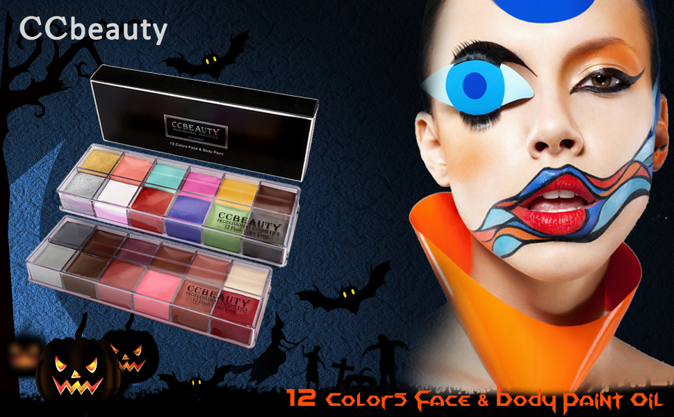 CCbeauty SFX Make-up equipment Skilled Face Physique Paint Oil 12 Colours Halloween Particular Results Stage Make-up Pretend Wound Scars Wax Oil Portray Set + Spatula Software