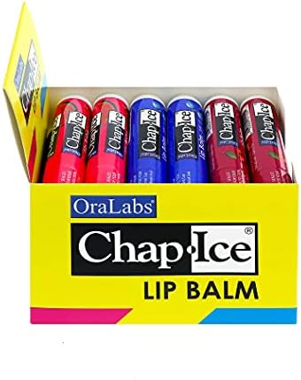 Chap-Ice® | Premium and Conventional Lip Balm for Chapped, Dry, or Windburned Lips | 3 Taste Assorted Show – Cherry SPF-4, Authentic SPF-4, Watermelon – 24 Sticks (0.15oz/4.25g)