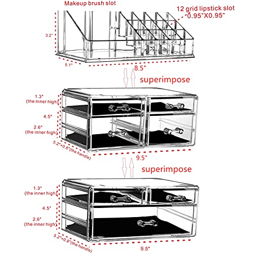 Cq acrylic Clear Make-up Organizer And Storage Stackable Giant Pores and skin Care Beauty Show Case With 7 Drawers Make up Stands For Jewellery Hair Equipment Magnificence Skincare Product Organizing,Set of three