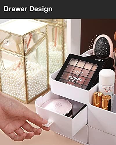 Designs Make-up Organizer With Drawers,BREIS Stylish Countertop Storage for Cosmetics Elegant Vainness Holder for Brushes, Eyeshadow, Lotions, Lipstick, Nail Polish and Jewellery (White)