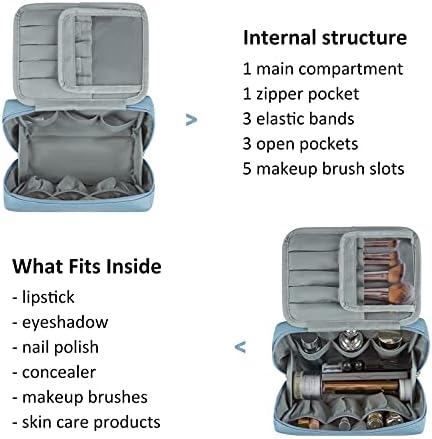 Nicely Organized Make-up Bag- With 3 elastic straps and three elasticized pockets to maintain bottles upright, avoiding liquid leakage. 5 brush slots with PVC-lined cowl for simple cleansing.These inside pockets for fast entry to your stuff.