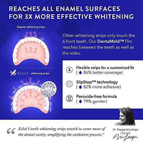 Enamel-Protected Tooth Whitening Strips – 3X Whiter Patented DentaMeld Formulation – 100% Fluoride & Peroxide Free – Protected for Delicate Tooth / Formulated by UK Dentists