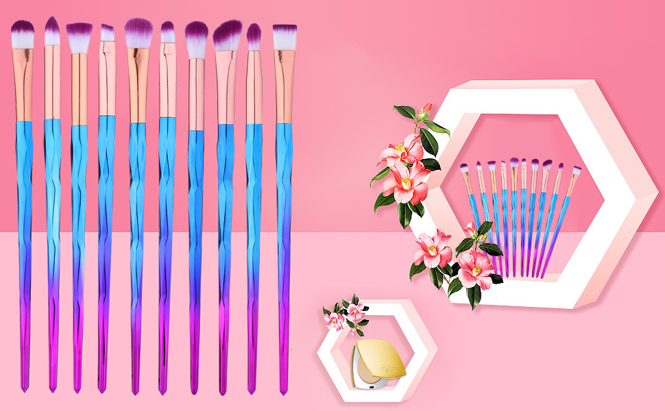 Eye Shadow Brush Set Unicorn 10Pcs Eye Make-up Brushes for Shading or Mixing of Eyeshadow Cream Powder Eyebrow Highlighter Concealer Cosmetics Brush Software