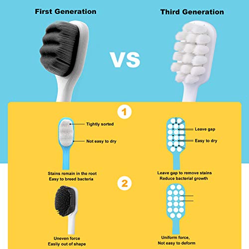 🐧 UPGRADED16 BRISTLE CLUSTERS DESIGN for HYGIENE: Separating 10000 dense bristles into 16 clusters, allows 10000 dense bristles to dry far more sooner than the froth sponge-like design common gentle toothbrushes, and forestall issues get trapped on the root which assist preserve the toothbrush clear. Additionally, this upgraded design makes bristles sturdy and never simple to splay out like others!