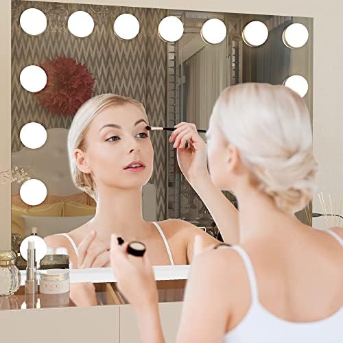 [Large Size & Perfect Gift]:This self-importance mirror has an ideal measurement 23.6*20.5inch offering you an ideal higher physique view. Keep away from the small space of the mirror after the bulb is put in, use a 10x magnifying glass. Handy to your use.The massive mirror as flattering as movie star mirror, stress-free and brightening up your make-up routine, It is an ideal reward for any ladies and women.