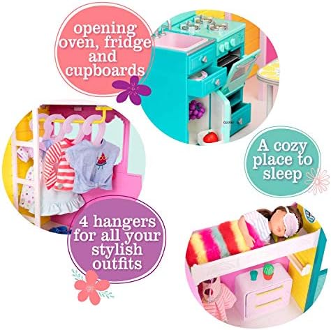 Totally assembled GG doll home with practical furnishings and over 20 equipment for 14-inch dolls (dolls offered individually, accessible on Amazon)!