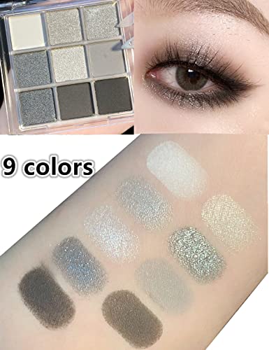 Go Ho 9 Colours Smokey Eyeshadow Palette,Matte & Glitter Grey/Black Eyeshadow Make-up,Longlasting Waterproof Cool Smoky Eye Eyeshadow Palette for Girls&Women