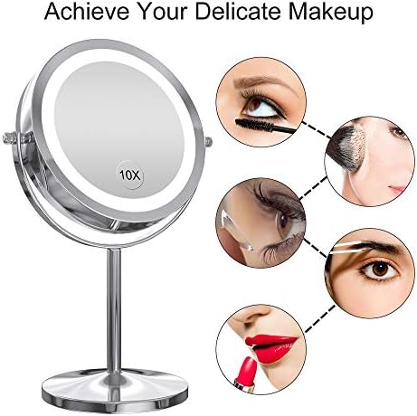 【MAGNIFYING VANITY MIRROR】- Double sided 1X regular viewing and 10X magnification to ensure each element is in place. This magnified mirror offers clear imaginative and prescient for any grooming or make-up use.
