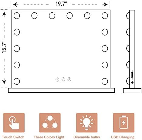 【Giant Dimension & USB Charging Port】It is giant sufficient to indicate your make-up and appropriate for dresser and bed room. The 15 frosted LED globe bulbs can be utilized repeatedly for 50,000 hours life. It is rather sturdy with out altering the bulbs. USB cost port on the aspect permits to cost your sensible telephone or different USB gadgets with out worrying about lacking any messages. Output of the adaptor must be 5V-2A (12V may burn the chip of bulbs) .