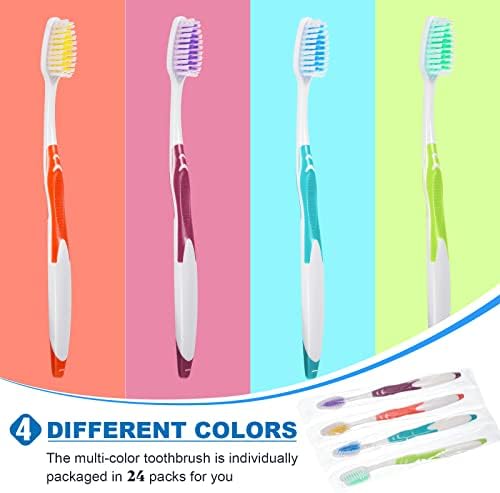 Individually Wrapped Toothbrush Disposable Journey Toothbrush Bulk Packed Toothbrush Straightforward Grip Tooth Brush Multi Colour Tooth Brush for Girls Males Grownup Lodges Company, 4 Colours (24)