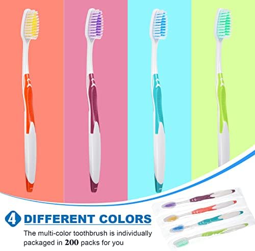 Individually Wrapped Toothbrush Disposable Journey Toothbrush Bulk Packed Toothbrush Straightforward Grip Tooth Brush Multi Colour Tooth Brush for Ladies Males Grownup Motels Visitors, 4 Colours (200)