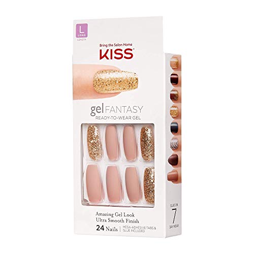 KISS Gel Fantasy Prepared-to-Put on Press-On Sculpted Gel Nails, “Background”, Lengthy, Pink and Gold, Excessive Arch Nail Equipment with 24 Mega Adhesive Tabs, Pink Gel Glue, Manicure Stick, Mini File, and 28 Pretend Nails