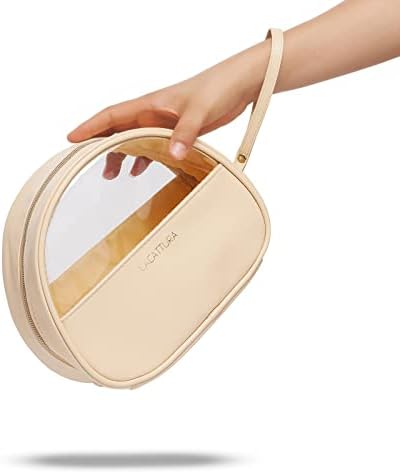LACATTURA Clear Journey Make-up Bag, Small Vegan Leather-based Beauty Organizer, Clear Toiletry Magnificence Bag, Moveable Zipper Pouch Storage Bag for Ladies/Ladies, Apricot