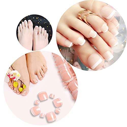LIARTY 28Pcs French Pretend Toe Nail Equipment, Acrylic Quick Full Cowl False Nail Ideas (Pure)