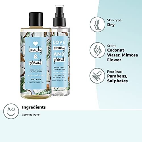 Love Magnificence and Planet Physique Wash and Cleaning Mist, Coconut Water & Mimosa Flower, 2 rely