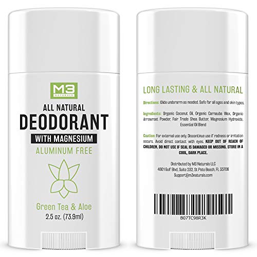 M3 Naturals – Pure Deodorant for Ladies and Males – Vegan, Gluten Free, Cruelty Free – Accommodates Magnesium – Aluminum Free, Paraben Free, Sulfate Free – Natural Coconut Oil, Inexperienced Tea and Aloe 2.5 oz