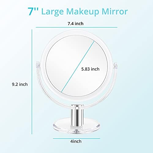 Magnifying Make-up Mirror Double Sided – Fabuday 7 Inch Tabletop Mirror with 1X & 10X Magnification, Magnified Desk Mirror for Make-up, Beauty Vainness Mirror with Stand and 360° Rotation, Acrylic