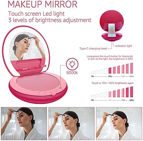 Make-up Mirror – Self-importance Mirror with Lights & Bluetooth Speaker, 3 Degree of Brightness Lights for Make-up, Contact Management, Transportable Multifunction Make-up Mirror as Girls Reward (Rose)