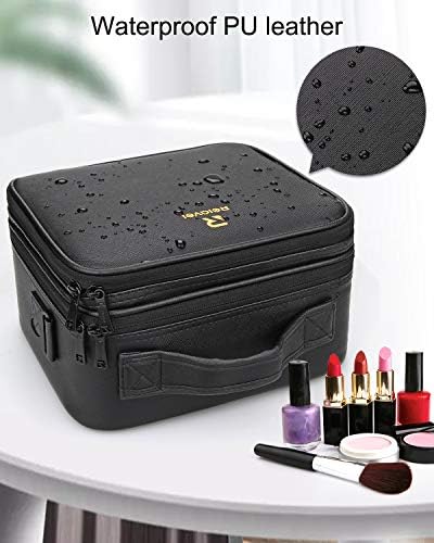 Make-up Organizer Bag, Relavel Make-up Case Leather-based Journey Make-up Bag 2 Layers Practice Case Giant Beauty Case Moveable with Adjustable Dividers Make-up Brushes Holder Storage Field (Small Black)