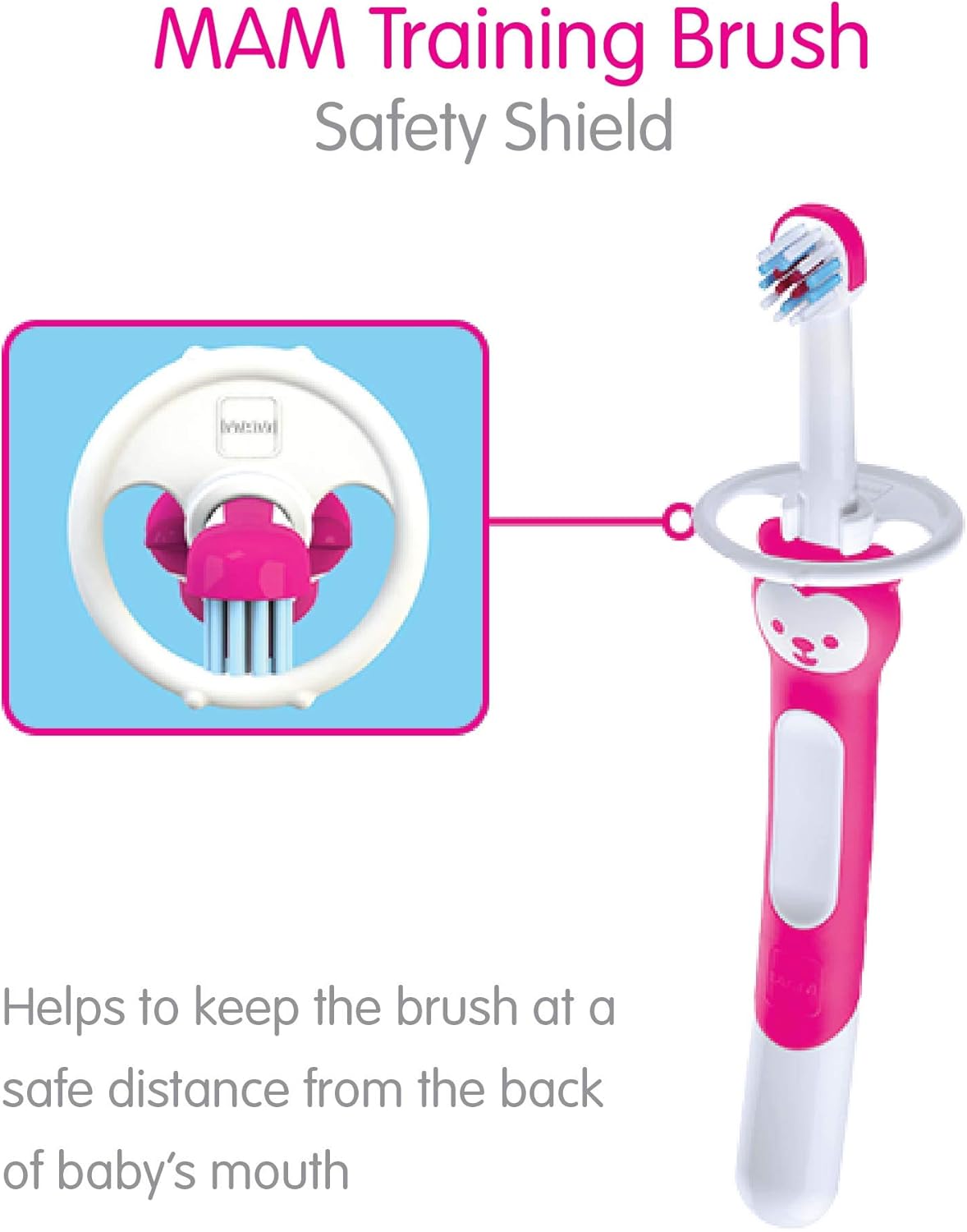 2 reviews for MAM Coaching Toothbrush for Infants (1 Child’s Brush with Security Defend), Child Toothbrush with Brushy The Bear Character, Interactive App, for Boys 5+ Months, Pink