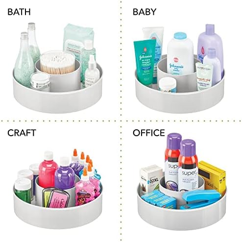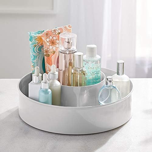 mDesign Plastic Spinning Lazy Susan Spherical Turntable Storage Tray – Rotating Organizer for Make-up, Cosmetics, Nail Polish, Nutritional vitamins, Shaving Kits, Hair Spray, Medical Provides, First Assist – Gentle Grey