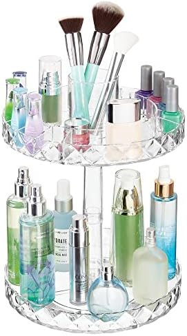mDesign Spinning 2-Tier Lazy Susan Make-up Turntable Storage Middle Tray – Rotating Organizer for Lavatory Self-importance Counter Tops, Dressing Tables, Beauty Stations, Dressers – 10.25″ Spherical – Clear
