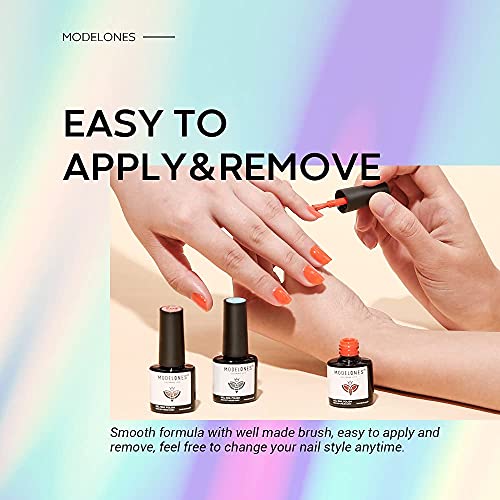 ★ SOAK OFF LED NAIL DRYER GEL NAIL POLISH: Modelones gel nail polish set with vivid comfortable glitter colours gel polish set must be cured beneath LED nail lamp. Gel Prime coat and base coat required. Common for LED Nail Lamp 60-120 secs.