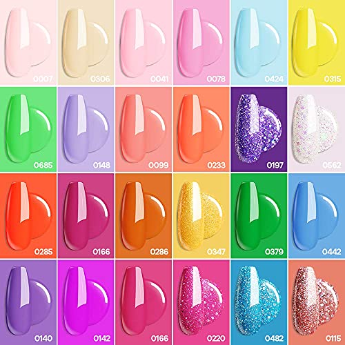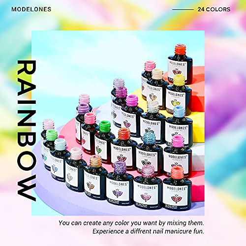 Modelones Gel Nail Polish, 24 Colours Rainbow Pastel Glitter Gel Polish 7ML Soak Off Nail Polish Set LED Nail Lamp Wanted with Present Field for Starters Girlfriend Ladies Vacation Nail Artwork Manicure Dwelling DIY