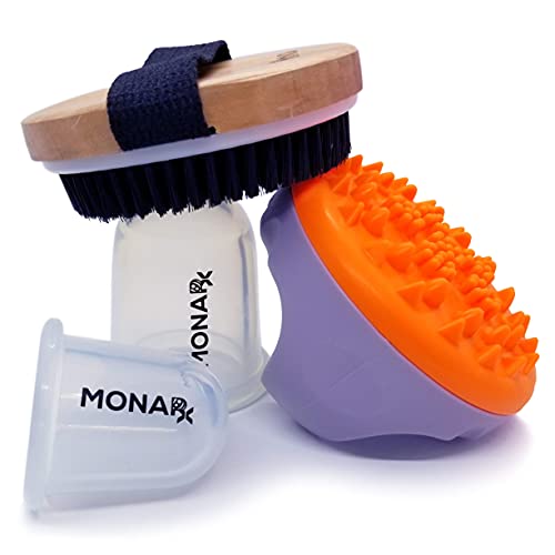 MonaRx Magnificence Anti Cellulite & Stretch Mark Package (Vegan & Cruelty Free Dry Brush + Fascia Massager + Silicone Vacuum Physique Cupping Remedy Set) Pores and skin Firming, Exfoliating, Lymphatic Drainage, Detoxify