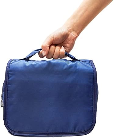 Navy Blue Hanging Toiletry Journey Bag for Girls, Males, Youngsters (9.5 x 7.5 x 3.7 In)