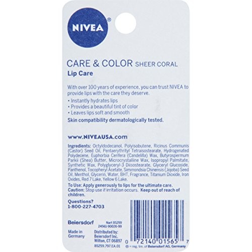 NIVEA Care & Coloration Sheer Coral Lip Care 0.17 Ounce Carded Pack (Pack of 6)