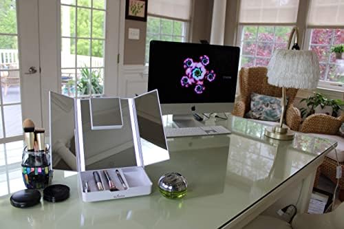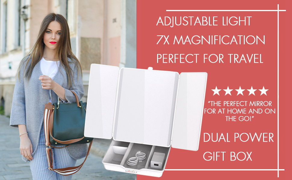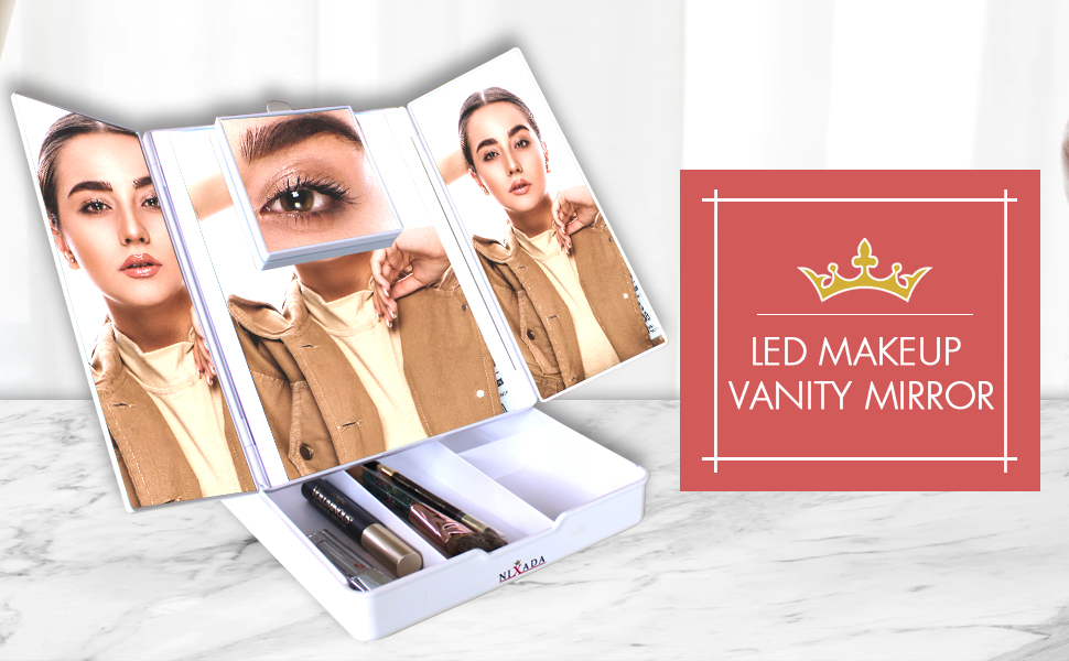 NIXADA Make-up Mirror Vainness Mirror – Make-up Mirror with Organizer and Lights, Make-up Mirror with Tray, Journey Mirror, Lighted Make-up Mirror, LED Mirror, Trifold Make-up Mirror, Make-up Mirror Lighted