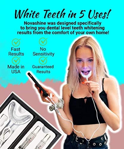 Novashine Skilled Enamel Whitening Package: Superior Blue LED Gentle, Concentrated Peroxide Gel, Smartphone Adapter, Journey Bag