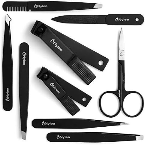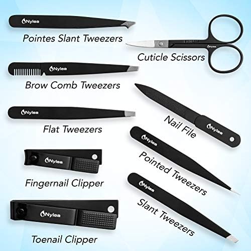 Nylea Tweezers Set and Nail Clippers for Males and Girls – Stainless Metal for Eyebrows – Tweezer Equipment for Ingrown Hair – Greatest Precision Slant Tip Facial Hair and Eyelashes – 9pcs